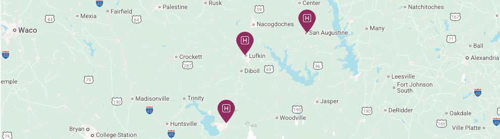 Heart valve repair or replacement ○ Mitral valve repair: a procedure that either strengthens the weakened mitral valve with supportive material or reshapes the valve ○ TAVR: a minimally invasive cardiac procedure for patients with aortic valve stenosis who are not eligible for open-heart surgery Arrhythmia procedures ○ Pacemaker implantation: a procedure to implant advanced pacing technology to restore the heart's normal rhythm ○ Cardiac ablation: a transcatheter procedure that scars the tissue responsible for arrhythmias Arterial procedures ○ Coronary artery bypass grafting (CABG): a heart bypass procedure used to bolster blood flow, usually used to overcome blocked arteries Cardiovascular locations across East Texas